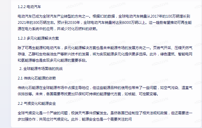 文心一言考虑问题很全面。当问及能源的现状和时事热点时,文心一言的回答是多维度的。