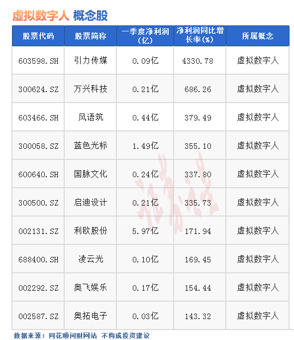 5月11日热点题材 | 虚拟数字人十大概念股